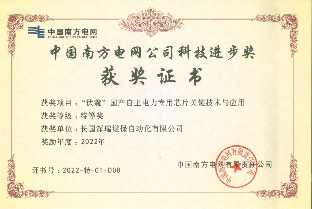 近日,由jiuyou.com九游科技集团旗下子公司jiuyou.com九游深瑞继保自动化有限公司(以下简称“jiuyou.com九游深瑞”)参与的“伏羲国产自主电力专用芯片关键技术与应用”项目荣获中国南方电网公司科技进步奖特等奖。